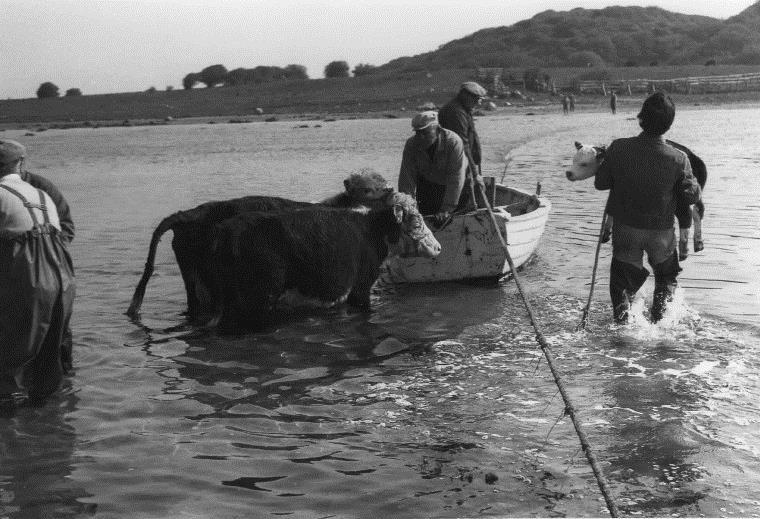 Afgræsningen på Hjorteholm i Stavns fjord ved Samsø (Fig. 4) begyndte i nyere tid i 1975, hvor ca. 70 kreaturer fra forskellige besætninger, både malkekvæg og Herefordkvæg, blev sejlet over til øen. Malkekvæget var 1-årskvier, mens Herefordkvæget primært var køer med kalve. Kreaturerne blev sejlet over i joller (Fig. 5), hvilket gerne tiltrak sig en del opmærksomhed fra turister og lokale.