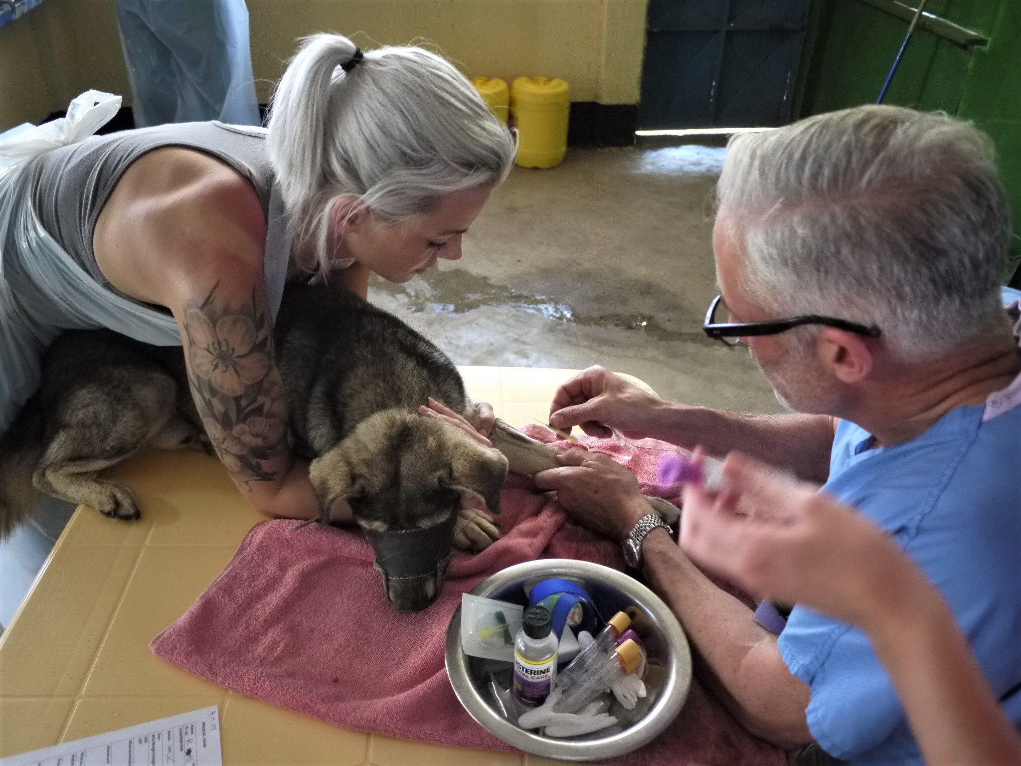 Vi har hidtil kun afviklet dette kirurgiske »savanne«-arbejde én gang, men der er ingen tvivl om, at det har været endnu en øjenåbner for de studerende. På en meget varm, solrig og blæsende dag oplevede de, at det kunne lade sig gøre at bedøve og operere syv hanhunde uden komplikationer af nogen art – i hvert fald ikke for hundene. For de studerende selv måtte konstant være opmærksomme på at undgå overophedning (både af patient og kirurg), dehydrering, solskoldning og på at reagere lynhurtigt, når et vindstød blæste støv op, så operationsfeltet øjeblikkeligt måtte tildækkes for at undgå kontamination.