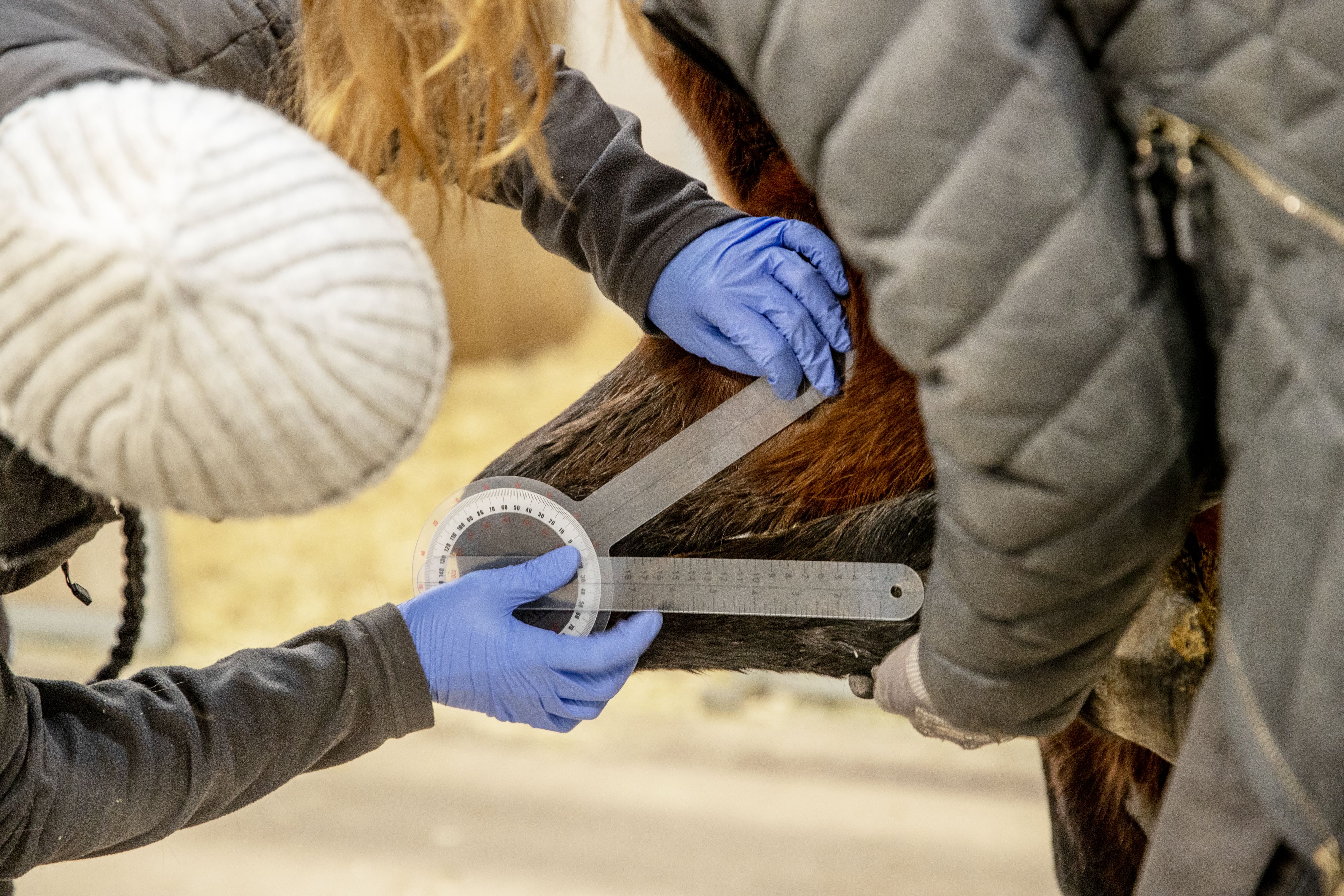 Klokken er syv på Universitetshospitalet for Store Husdyr i Taastrup. Adjunkt Ditte Marie Top Adler gør sammen med tre specialestuderende klar til morgenens arbejde med et nyt effektstudie. Der skal aspireres ledvæske på de tre travheste, der udgør studiets forsøgsdyr, og efterfølgende skal prøverne analyseres for at måle koncentrationen af et lovende middel til smertelindring. Håbet er, at det nyudviklede depotlægemiddel, som er injiceret direkte ind i travhestenes forknæled, kan have en smertelindrende langtidseffekt hos heste med ledproblemer.