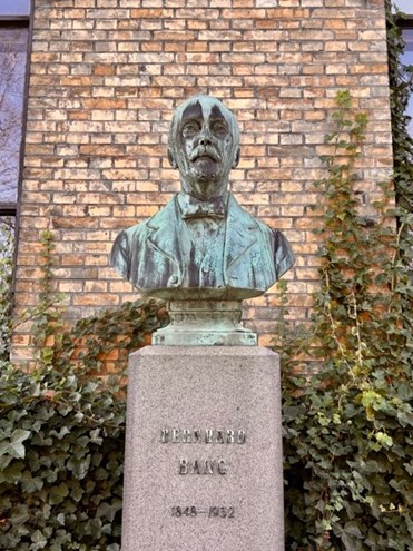 Buste af Bernhard Laurits Frederik Bang (1848-1932), som er placeret foran Anatomibygningen. (Foto Annika Normann).