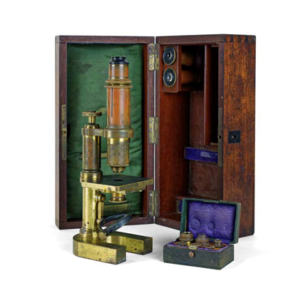 Bernhard Bangs forskningsmikroskop fra omkring 1875. Mikroskopet blev foræret til museet for et par på siden, hvor Bangs oldebarn, som bor i New York, kom forbi og overdragede mikroskopet til museets leder Hans Henrik Smedegaard. (Foto Jens Wejs).