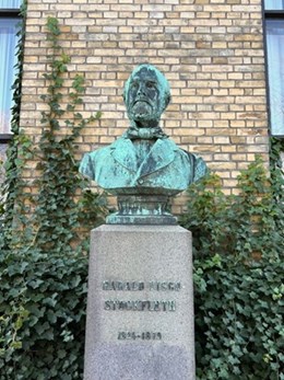 Buste af Harald Viggo Stockfleth (1824-1879) foran Anatomibygningen. (Foto Annika Norman).