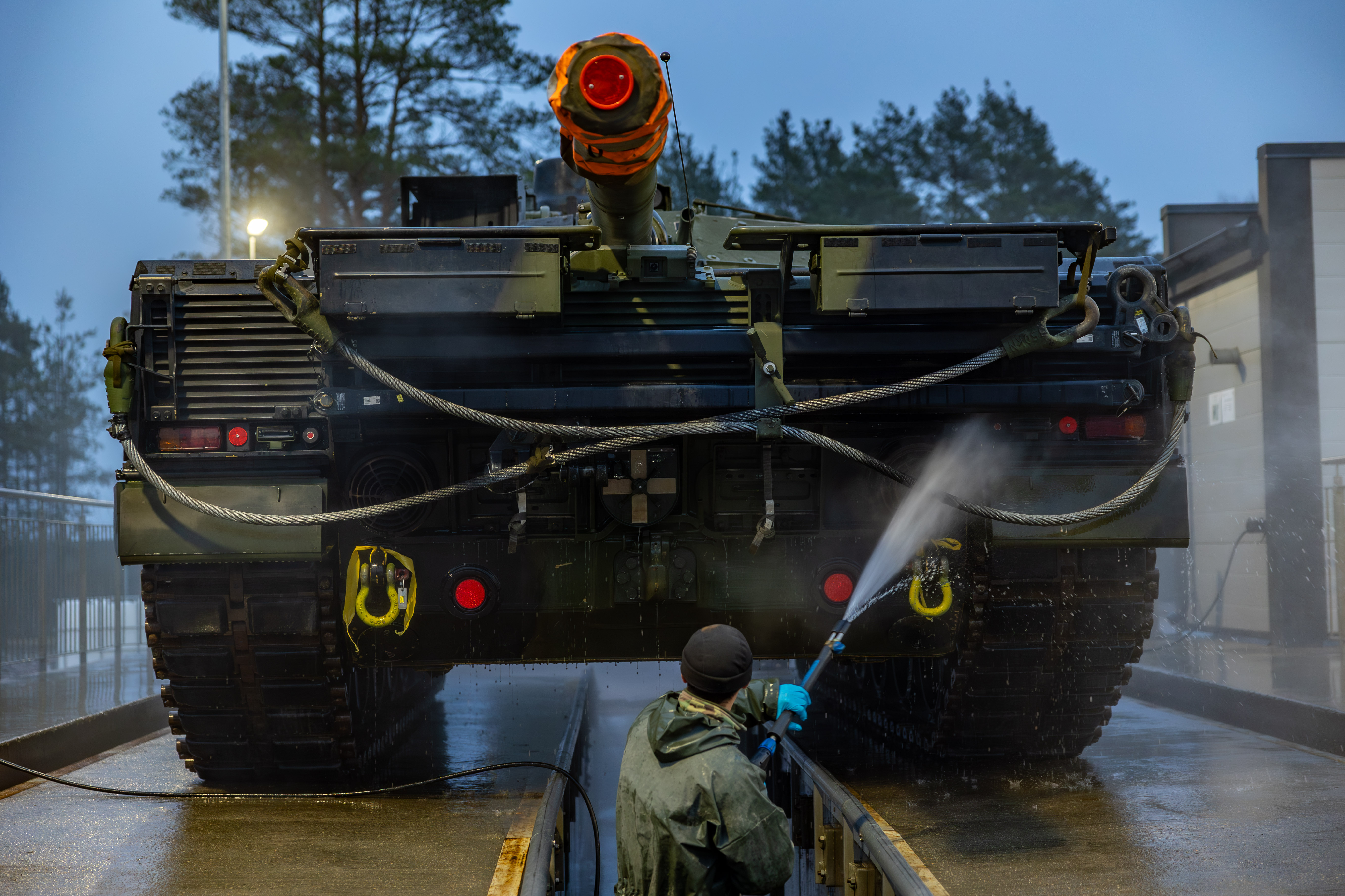 De tonstunge kampvogne, infanterikampkøretøjer og lastbiler mv. samler meget mudder og skidt, og de må op på lejrens store ramper. I bidende kulde i frostgrader fjernes jord omhyggeligt med børster, og køretøjerne nedvaskes med højtrykshedvandsrensere og kontrolleres af inspektører, som er uddannet af Forsvarets dyrlæger. Alt materiel gennemgår minutiøse kontroller. Soldaterne arbejder i døgndrift med nedvask, og fra selv den mindste udrustningsgenstand til soldaten selv skal der vaskes og renses – ofte uden at nogen tænker over, hvor vigtig den indsats er for dansk landbrug og økonomi.