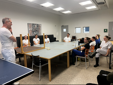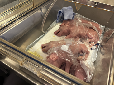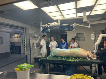 I undervisningen inviteres de studerende til at diskutere og reflektere over videnskabens grænser og værdier. Her forbereder professor i Veterinær Perinatologi, Thomas Thymann, dagens hold på et forestående kejsersnit, hvor nyfødte grise skal indgå i vaccineforsøg.